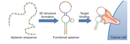 Aptamer一般由15~30個單鏈核苷酸組成,并折疊產(chǎn)生明確的三維二級空間結(jié)構(gòu),和目的蛋白結(jié)合后,干擾此蛋白質(zhì)和其他分子的相互作用。